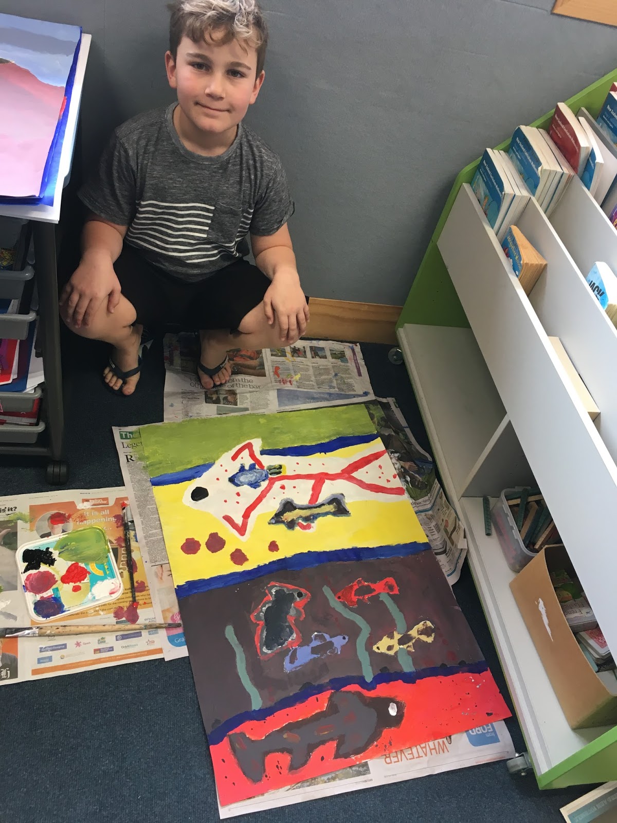 This year we have been inspired by Sandra Silberzweig because she uses big bold colours for her magnificent fish. Did you know that Sandra Silberzweig is from Canada? We emailed her and told her that her art work has inspired us for our art exhibition, she was so excited and wants us to email her pictures once they are finished! Working with paint has been fun and has helped up develop our fine motor skills as well as mixing paints to make amazing colours. We hope you enjoy our art work as much as we have enjoyed creating it!